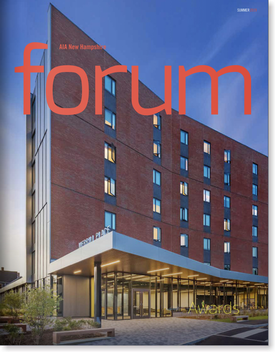 FORUM seeks to serve the members of AIANH and to highlight the roles, concerns and interests of New Hampshire architects to the wider community. FORUM provides chapter communications and resources and incorporates issues relevant to the national AIA. Each issue highlights design excellence in architecture, innovative products and/or technologies as well as individuals and organizations working in the built environment.